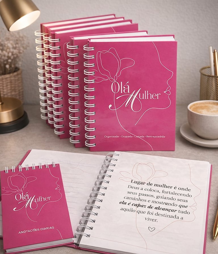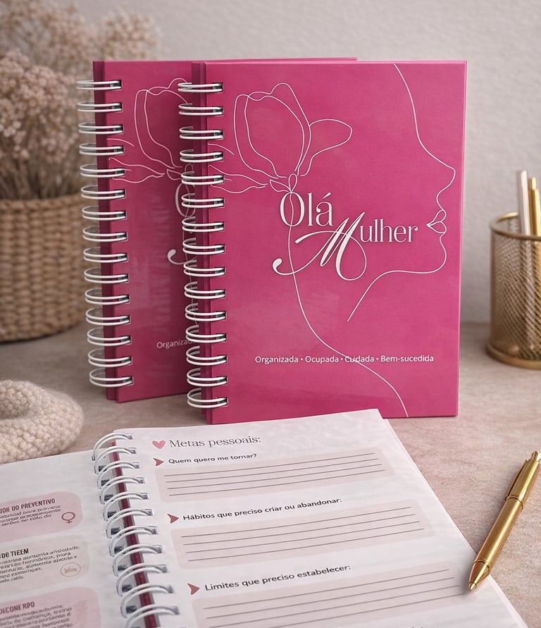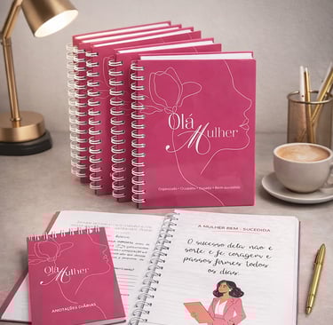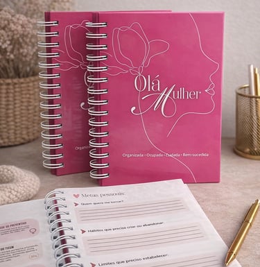 O Olá Mulher é mais do que um caderno: é uma ferramenta de transformação pessoal criada especialmente para mulheres que têm visão de futuro e desejam viver com propósito, clareza e direção. Desenvolvido com sensibilidade e intenção, ele foi pensado para acompanhar você em um processo real de autoconhecimento, organização da vida e fortalecimento emocional e espiritual.